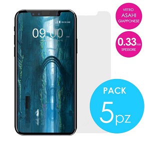 Confezione 5 pz. pellicole in vetro temperato ULTRA, antifrantumi, per Apple iPhone X, Xs.